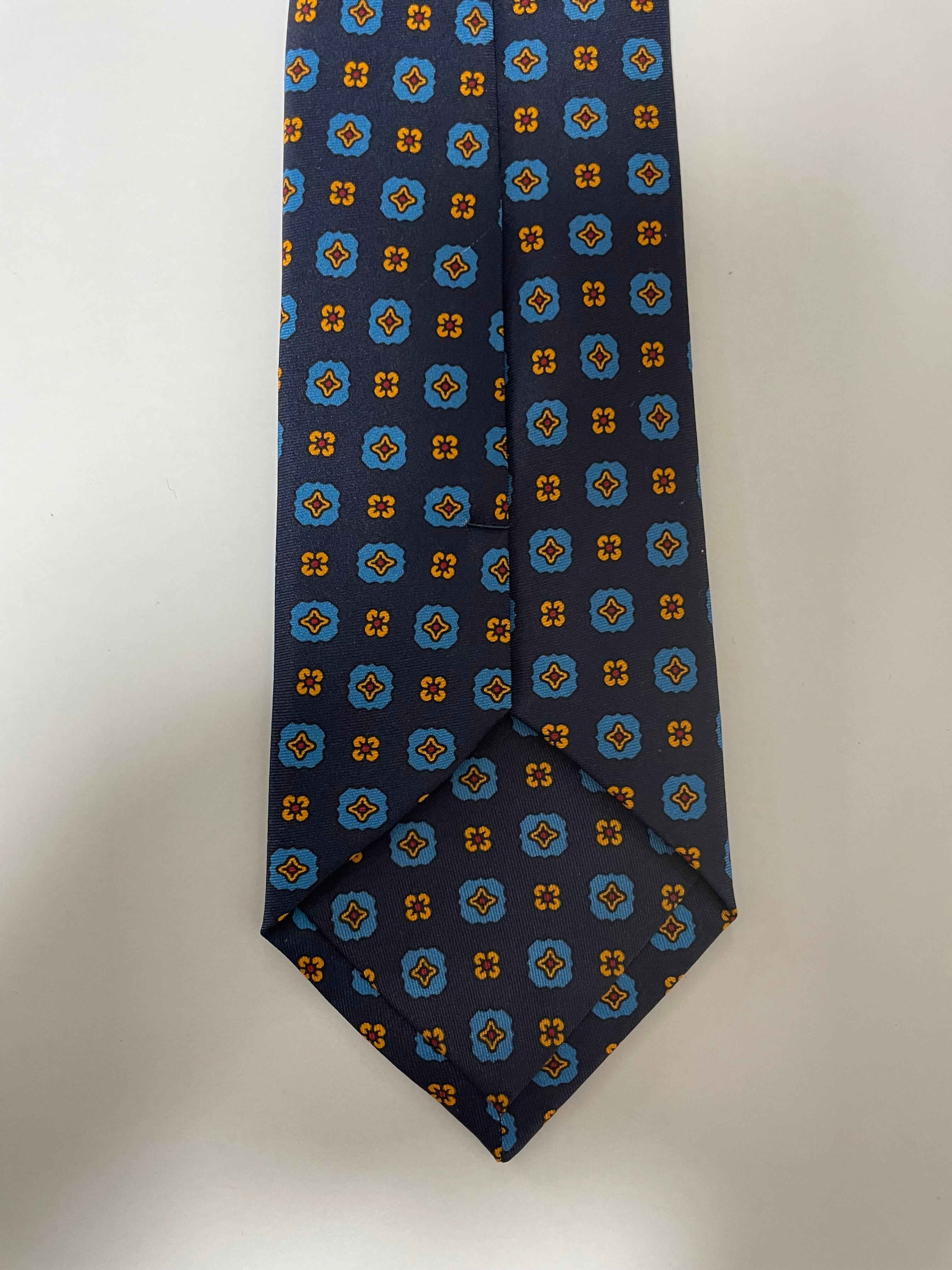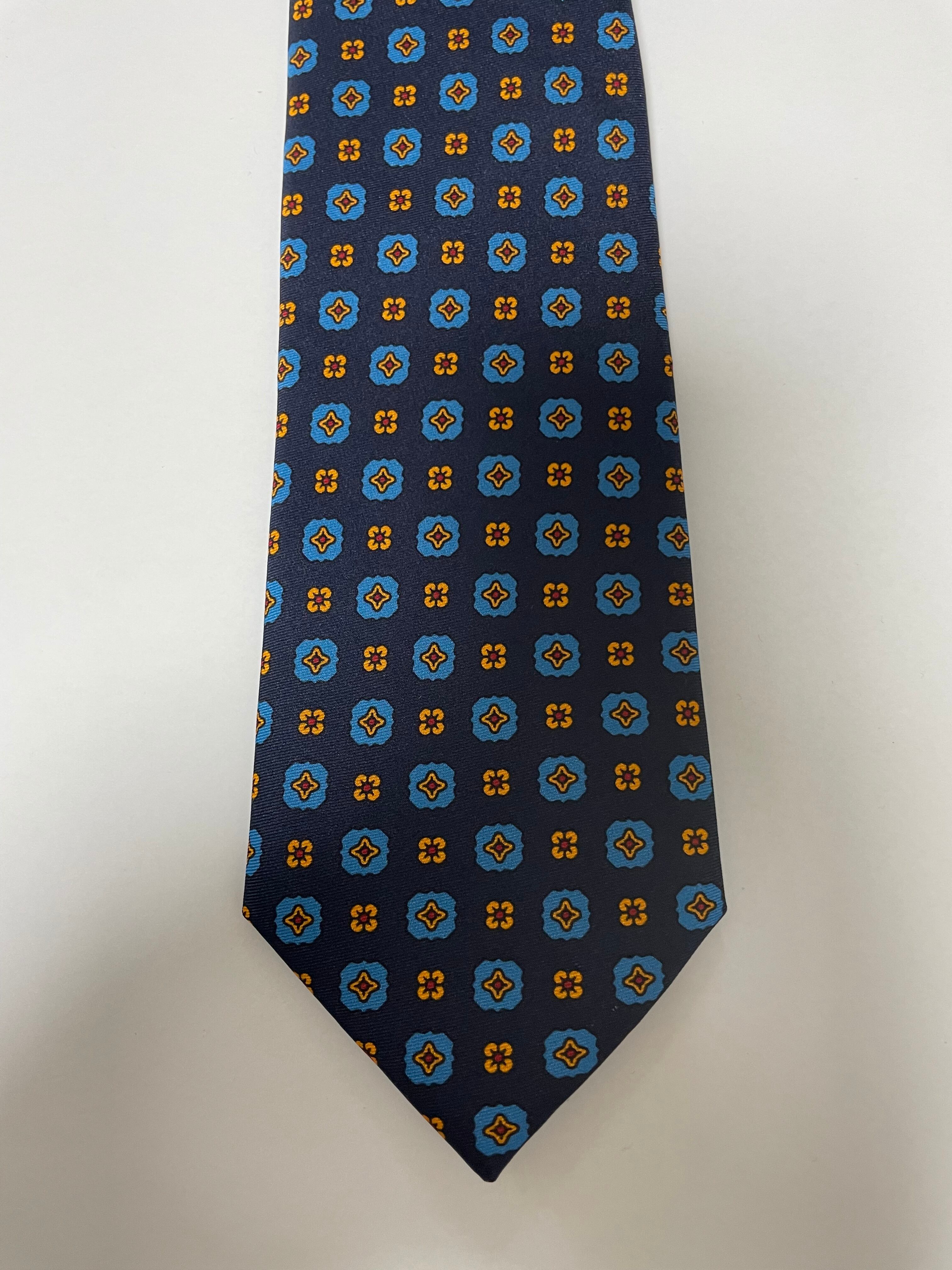 Geometric Printed Silk Tie - Navy
