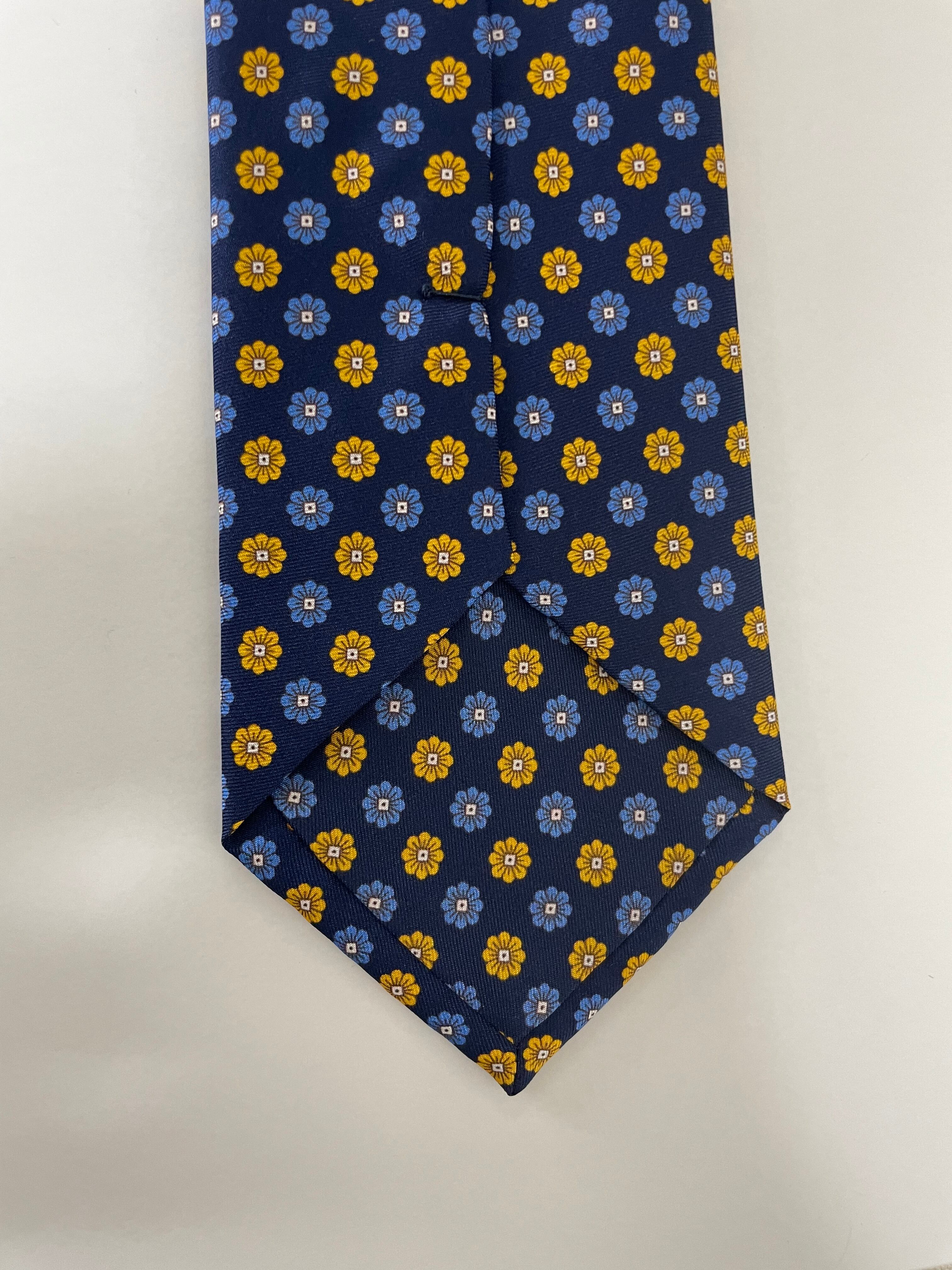 Medium Floral Printed Silk Tie - Navy